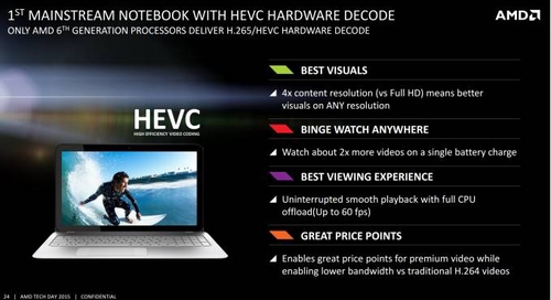 Мобильная линейка также включает в себя четырехъядерный процессор AMD PRO A8 и A10 со встроенной видеокартой Radeon R6. Каждый из новых процессоров с кодовым названием Carrizo PRO также поддерживает технологию ARM TrustZone и HEVC видео-декодер.