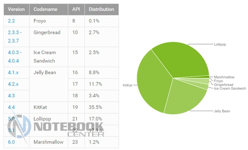 Статистика за январь свидетельствует о том, что среди всех android-версий лидером является Android 4.4 KitKat. Ее процентный показатель составляет 35.5%. Однако, в скором времени все может измениться, ведь ее отрыв от Lollipop совсем мизерный. Так, рыночная доля последней 34.1%. Что касается Marshmallow, то она, в целом, распространяется совсем неплохо. В частности, если сравнить с предыдущими отчетами, то Android 6.0 смогла увеличить свое присутствие почти вдвое. Хотя все относительно, поскольку прошло уже 4 месяца с момента ее выпуска, а до нее обновилось всего 1.2% устройств.