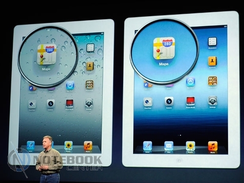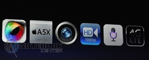 Большинство слухов о новом iPad оказались правдой, iPad 3 наконец-то получил дисплей Retina (264 точки на дюйм) с разрешением 2048x1536 пикселей. В презентации было заявлено, что у него на 44% лучше цветопередача, чем у предыдущей модели. Получил iPad 3 и новое сердце, а именно четырехъядерный Apple A5X, который, по информации с презентации, в 4 раза производительнее всем известной платформы NVIDIA Tegra 3. Также новинка оснащается 5-мегапиксельной камерой iSight на тыльной стороне, которая имеет функцию распознавания лиц и пишет видео в формате 1080p.
