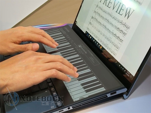 Однако интрига заключается совсем в другом: наличии дополнительного 14-дюймового дисплея с соотношением сторон 14:4. Он тоже сенсорный, наделен качественной IPS-матрицей, но имеет матовое покрытие и разрешение 3840х1100 пикселей. Возможно, расположение экрана потребует привычки, в остальном же масса преимуществ, например, когда необходимо писать тексты и параллельно просматривать диаграммы, таблицы; или же работать в графических редакторах и попутно общаться в чатах. Также можно использовать оба дисплея в режиме расширения.