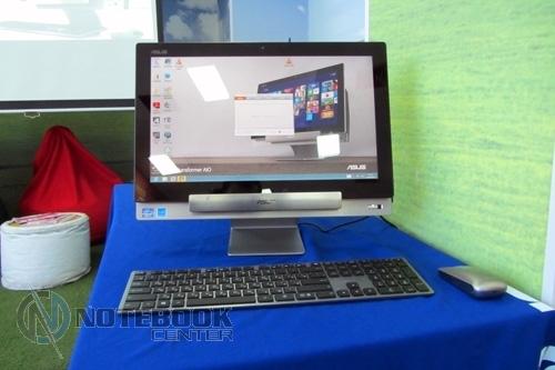 23 апреля 2013 года в Украине был представлен первый в мире моноблок, объединивший в себе производительность стационарного компьютера и удобство планшета. На этой презентации имела честь побывать редакция нашего портала. В начале мероприятия была затронута тема актуальности моноблоков. Системы All-in-One используются в крупных супермаркетах, телевизионных студиях, банках. Зачастую, эти устройства имеют сенсорные экраны. Наглядными примерами стали ASUS All-in-One-PC ET2700, ET2200, ET2300. Первый имеет мультисенсорный экран, встроенный ТВ-тюнер, внешний сабвуфер, вход и выход HDMI, поддерживает технологию ASUS SonicMaster. ASUS All-in-One-PC ET2200 может похвастаться лаконичным дизайном, совместимостью с креплением стандарта VESA и углом наклона экрана 16-45 градусов. Последний из упомянутых, ASUS All-in-One-PC ET2300, имеет 23-дюймовый мультисенсорный (распознает 10 пальцев) Full HD IPS дисплей, может комплектоваться процессорами Intel Core i3/i5/i7, интегрированной графической картой Intel HD Graphics 2500/4000, дискретной графикой NVIDIA GT 630M (1ГБ/2ГБ), жестким диском до 2 ТБ/SSD 64 ГБ, имеет модули Wi-Fi (или Wi-Fi+WiDi). Из интерфейсов стоит выделить два разъема Thunderbolt, вход и выход HDMI, 4 динамика и 2 сабвуфера и встроенную 2-мегапиксельную камеру с разрешением 1080p. ASUS ET2300 имеет уникальный дизайн с двойными шарнирами и широкие углы обзора (178° по вертикали и горизонтали).