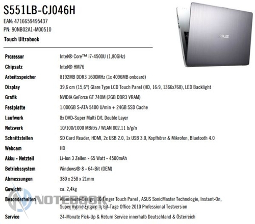 К слову, в Европе название ультрапортативного устройства будет несколько иным, а именно – VivoBook S551. Но вот технические характеристики ультрабука от территории меняться не будут. Новинку снабдят видеокартой GeForce GT 740M от NVIDA, 8 ГБ оперативной памяти, 1 ТБ жестким диском и твердотельным накопителем до 24 ГБ. Ноутбук толщиной всего в 2 см также будет оснащен DVD-ридером, а также Wi-Fi, Bluetooth, HDMI, тремя портами USB (в том числе одним портом USB 3.0) и 65 Втч батареей.