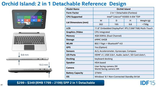 Это конструкция для 11.6-дюймовых планшетов на базе Intel Braswell, с 4 ГБ оперативной памяти и ценой в пределах от $299 до $349. Не удивляйтесь, если вскоре на рынке появятся устройства на основе данного дизайна от китайских производителей.