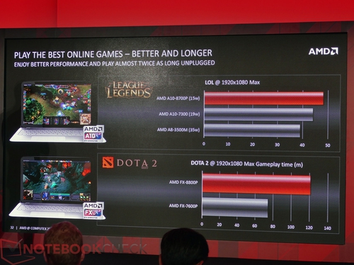 Большинство новых процессоров AMD 15 ваттные, но в более дорогих сериях A10 и FX также появятся и модели с энергопотреблением в 35 ватт, что позволит производителя ноутбуков предложить пользователям варианты с большей производительностью, пожертвовав при этом временем автономной работы.