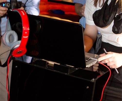 По окончанию лазерного шоу к микрофону по очереди подходили представители HP и в нескольких словах описывали все достоинства новых ультрабуков. Так, HP Envy 4 оснащается процессором Intel Core i5 третьего поколения, встроенной видеокартой Intel HD Graphics 4000, 4-8 Гб оперативной памяти, жестким диском или гибридным HDD + SSD. HP Envy 4 имеет 14-дюймовый дисплей и пару динамиков Beats Audio.