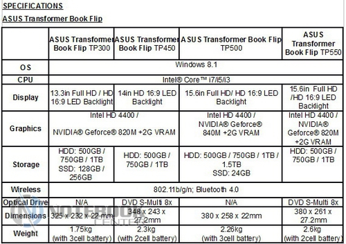 Transformer Book Flip оснащен 15.6-дюймовым ноутбуком с графическим адаптером NVIDIA GeForce NV 820, 1 ТБ встроенной памяти и 4 ГБ оперативной памяти. Работа осуществляется на ОС Windows 8.1 (64-бит). Поставки Transformer Book Flip начнутся в этом месяце, в то время как T200 поступит на полки магазинов в декабре.