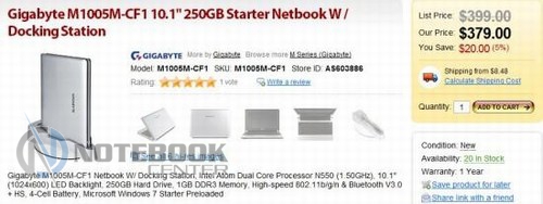 Нетбук Gigabyte M1005M уже поступил в продажу.