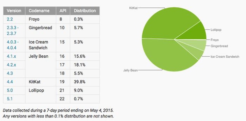 Google опубликовала статистику использования версий Android в которой видно, что доля Android Lollipop значительно увеличилась по сравнению с началом апреля. И теперь актуальная версия операционной системы установлена на 10% всех Android-устройств.