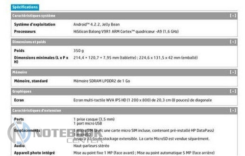 Для начала, HP Slate 8 Plus будет поставляться с 8-дюймовым дисплеем с разрешением 1280х800 пикселей, а также 1.6 ГГц четырехъядерным процессором процессор Hisilicon Balong V9R1. Отметим, что устройство станет первым носителем чипа Hisilicon и не продуктом компании Huawei.