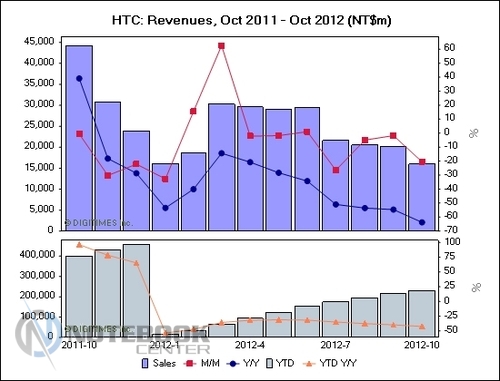 HTC объявила, что в ноябре доходы ее составили $730 млн, что на 23.3% больше по сравнению с $500 млн в предыдущем месяце. Однако если провести параллель с ноябрем 2011 года, то тогда доход составлял $900, что говорит о снижении доходности на 31.4%.