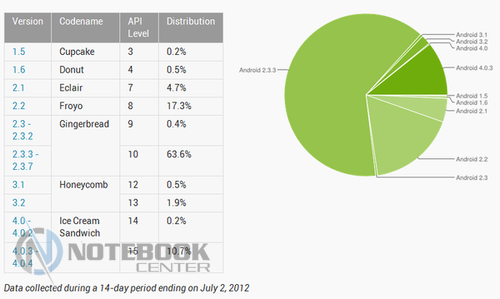 Следует отметить, что все данные были собраны в 14-дневный срок до 1 августа 2012 года, опираясь на количество зафиксированных устройств в Google Play.