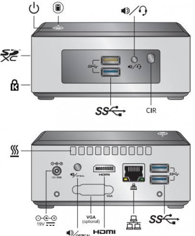Новые мини-компьютеры укомплектованы 14-нм процессорами с энергопотреблением на уровне 6 Вт, построенными на платформе Braswell. По сравнению с чипами Atom того же архитектурного поколения, новые CPU демонстрируют более высокую производительность благодаря повышенному TDP.