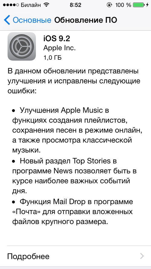 Апдейт операционной системы можно загрузить «по воздуху», он содержит внушительный список исправлений, доработок и улучшений. К примеру, улучшена работа Safari View Controller и Apple Music, также исправлен баг «зажатого» верхнего регистра в клавиатурах с кириллицей при наборе текста.