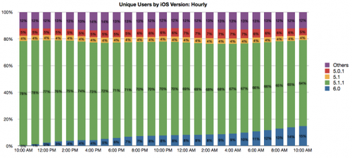Не успела шестая версия ОС iOS выйти в свет, как в первые 24 часа 15% пользователей устройств от Apple скачали обновление. Такие результаты не могут не порадовать «яблочную компанию», ведь при внедрении iOS 5 за первые пять дней на новую ОС перешло всего на 20% устройств.