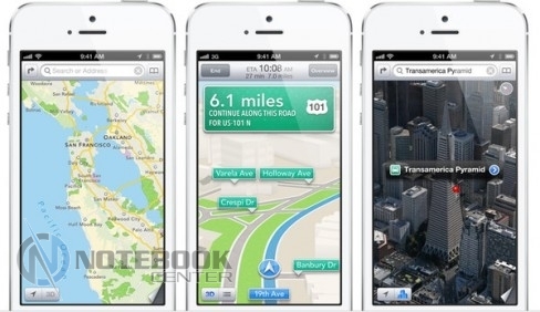 Смартфон работает под управлением ОС iOS 6. В устройстве используются собственные карты Apple с возможностью отображения зданий в 3D.