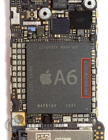Подчиняется вся начинка процессору Apple A6 с 1 Гб памяти Elpida LP DDR2 SDRAM и маркировкой B8164B3PM.