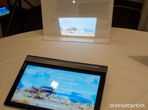Модель премиум-сегмента Yoga Tab 3 Pro предлагает 10-дюймовый дисплей с разрешением 2560х1600 пикселей. Планшет оснащен CPU Intel Atom x5-Z8500, 2 ГБ ОЗУ и 16 ГБ флеш-памяти, емкость батареи исчисляется 10200 мАч – она должна обеспечивать очень продолжительный период автономности. Разрешение задней и фронтальной камер составляет 13 Мп и 5 Мп соответственно. Отличительной особенностью данной модели также является наличие интегрированного проектора с яркостью 50 нит и четыре фронтальных динамика. Устройство весит около 670 г за счет металла и вставок из кожи в корпусе.