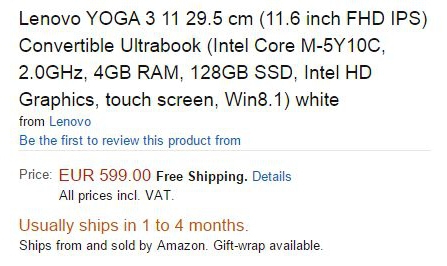 Стоимость трансформера составит от $742 до $1238. Почему так дорого? Спросите вы. Но по сравнению со своими предшественниками, все версии Lenovo Yoga 3 11 стали тоньше и легче, а это говорит, скорее всего, о пассивной системе охлаждения. Также увеличилось и время автономной работы.