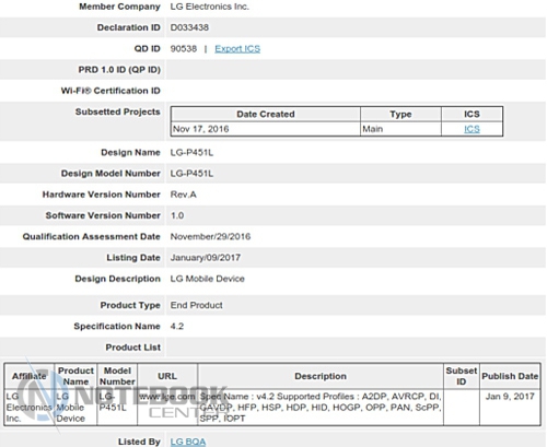 Стало известно, что в WiFi Alliance и Bluetooth Special Interest Group проходила сертификацию модель планшета LG-P451L. Тестирование завершилось успешно, поэтому можно надеяться, что новинку представят очень скоро. Как знать, возможно, на MWC 2017.