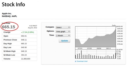 Акции компании Applе совершенно неожиданно стали самыми дорогими на бирже. Это произошло вчера, 20 августа, когда на момент закрытия торгов стоимость одной акции составила $665.15, это означает, что размер их рыночной капитализации теперь составляет $623.5 млрд. Эта цифра бьет рекорд, поставленный компанией Microsoft в 1999 году, когда одна акции компании стоила $120, а капитализации достигала $620 млрд.