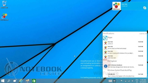В видеоролике демонстрируется отображение непрочитанных Skype-сообщений и всплывающее окно с информацией о том, что USB-устройство готово для безопасного извлечения. И даже если для кого-то дизайн интерфейса не так привлекателен, не стоит расстраиваться, вполне вероятно, что окончательная версия ОС Windows 9 претерпит изменения, графические в том числе.
