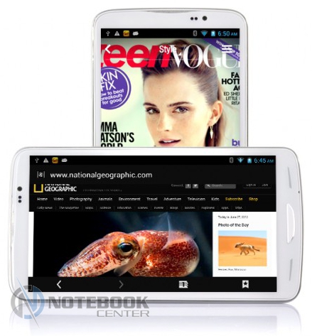 В устройстве нашлось место и слоту для карт памяти емкостью до 32 ГБ, 2-мегапиксельной камеры, Bluetooth, GPS, аккумулятора емкостью 3200 мАч и ОС Android 4.1.2 Jelly Bean. В целом устройство можно назвать огромным фаблетом, лишь приставка Tab в названии четко указывает о принадлежности новинки к рынку планшетов.