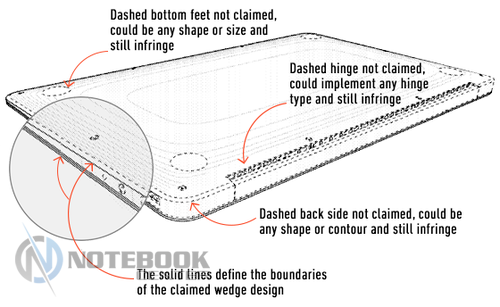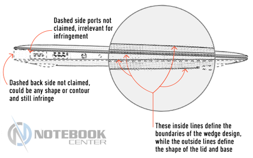 Как стало известно, представители компании Apple подали патент. В нем они хотят зарегистрировать форму MacBook Air (в заявке она со множеством пунктирных линий, которые не определяют запатентованные детали). Фактически компания хочет запатентовать общий вид, а не конкретные детали. Такое решение, скорее всего, вызвано появлением большого количества ультрабуков у других компаний-производителей. Тем не менее, вряд ли форма ноутбука может быть настолько уникальна. Да и, вероятней всего, патент не остановит желание компании выпускать ультрапортативные устройства.