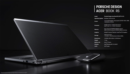 Porsche Design Acer Book RS работает на основе процессора Intel Core i7 11-ой генерации с дискретной графикой NVIDIA GeForce MX350 и 16 ГБ ОЗУ. 14-дюймовый IPS-дисплей предлагает возможности встроенного тачскрина и разрешение Full HD, а также 100%-ое соответствие цветовому пространству sRGB и защиту стеклом Antimicrobial Corning Gorilla Glass.