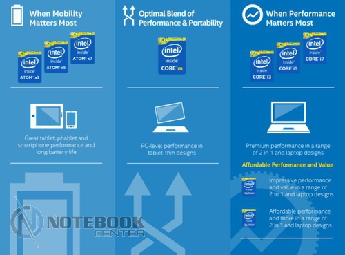 Надо отметить, что Intel не перестанет позиционировать процессоры Intel Core M, как своего рода мостик между чипами Intel Atom и Intel Core i3. Они являются высокопроизводительными решениями при низком энергопотреблении.