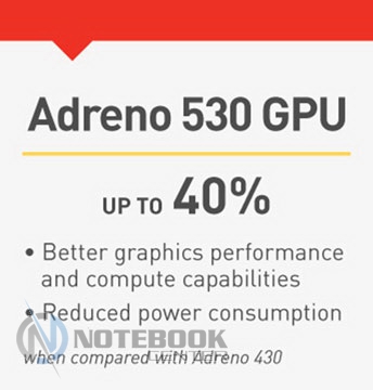 Qualcomm подтвердил использование нового GPU Adreno 530 в Snapdragon 820. Графический чип обеспечит 40%-ное повышение мощности, в сравнении с Adreno 430 в Snapdragon 810.