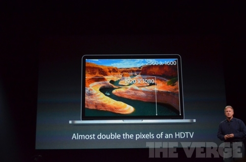 Сейчас в Калифорнийском театре в Сан-Хосе проходит презентация новых продуктов Apple. Одним из самых ожидаемых стал новый 13.3" Macbook Pro Retina. Конечно же, главной особенностью этого ноутбука стал Retina дисплей. Его разрешение составляет 2560х1600 пикселей - это больше чем у телевизора с Full HD разрешением в два раза. Углы обзора доходят до 178 градусов, яркость составляет 300 нит. Количество пикселей увеличилось до 4.096 млн., что в 4 раза больше, чем у предыдущего поколения 13" Macbook Pro. Новинка по праву занимает вторую позицию по параметру разрешение дисплея после 15" модели с Retina дисплеем.