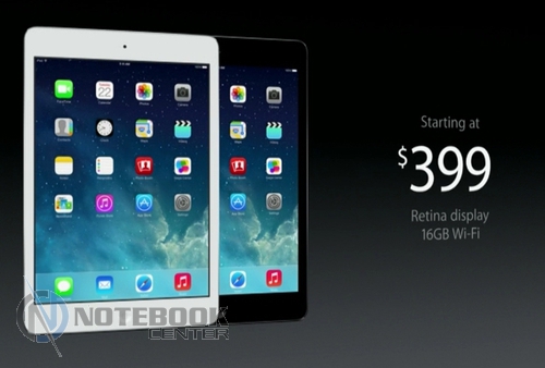 Обновленный iPad mini имеет 7.9-дюймовый дисплей с разрешением 2048х1536 пикселей и процессор Apple A7. В продаже новинка появится в ноябре по цене от $399.