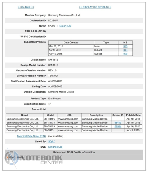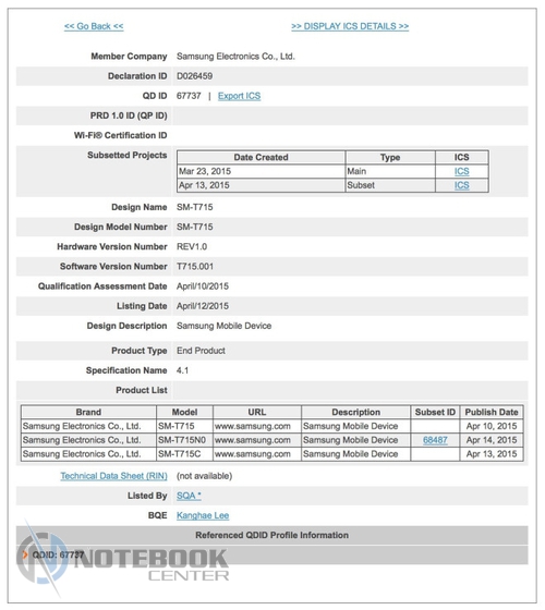 В прошлом году Samsung представила одни из лучших планшетов Galaxy Tab S с 8.4- и 10.5-дюймовыми дисплеями. А в 2015 году южнокорейская компания планирует выпустить второе поколение этих устройств, как и ожидалось с именем Galaxy Tab S2. Сегодня два устройства SM-T715 и SM-T815 получили сертификат от Bluetooth SIG. Планшеты оснащены 8- и 9.7-дюймовыми дисплеями. Подтверждено, что гаджеты оснащены Bluetooth 4.1, а позже будет доступна LTE-версия.