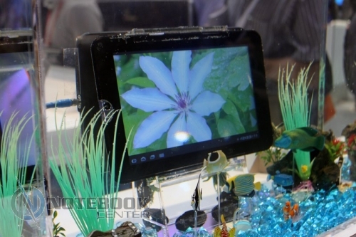 Следующими в списке разработок компании идут планшеты. Компания Toshiba продемонстрировала большое количество разнообразных прототипов планшетов. Один из прототипов представляет собой водонепроницаемый планшет, который работает в наполненном аквариуме. Еще был представлен ряд других планшетов в различных размерах, 5-дюймовый планшет с соотношением сторон 21:9, 7.7-дюймовым AMOLED-планшет и довольно массивный 13.3-дюймовый HD-планшет.