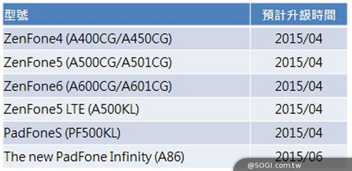 Итак, подробнее. ZenFone 4, ZenFone 5, ZenFone 5 LTE и ZenFone 6 получат обновление программного обеспечения в апреле 2015 года, а затем в том же месяце обзаведется апгрейдом и Padfone S (PF500KL). Кроме того, ASUS планирует установить ОС Android 5.0 в PadFone Infinity A86, случится это в июне 2015 года.