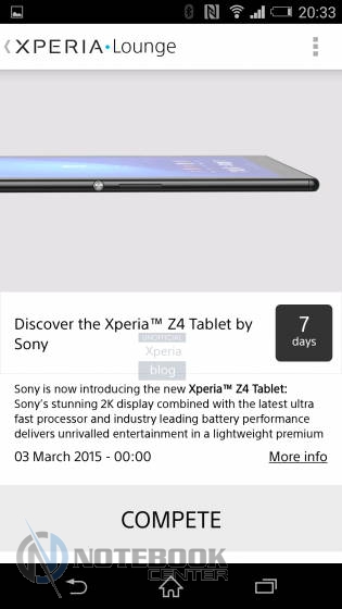 После запуска Xperia Z3 Tablet в прошлом году, мы могли только предполагать, что новый планшет Sony находится в процессе разработки, а благодаря приложению Xperia Lounge теперь точно известно, что Xperia Z4 Tablet будет представлен совсем скоро. Судя по скриншоту из приложения, который можно наблюдать чуть ниже, релиз устройства запланирован на 3 марта.