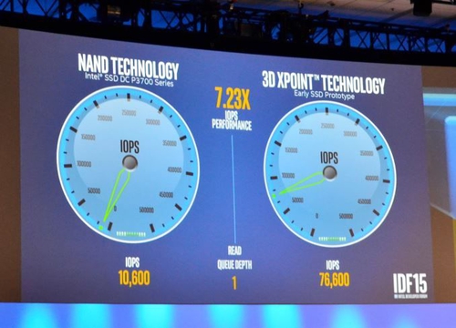 Что касается реальной производительности, на форуме разработчиков Intel, который прошел в Сан-Франциско, компания показала демо-версию ПК с сэмплом накопителя Intel Optane. Образец показал результаты в 5-7 раз быстрее серии Intel P3700, и это только начало.