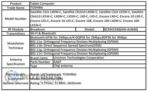 Хотя официального анонса новинки еще не было, Toshiba Satellite Click 10 недавно появился на сайте Wi-Fi Alliance, а на этой неделе прошел аттестацию в FCC.