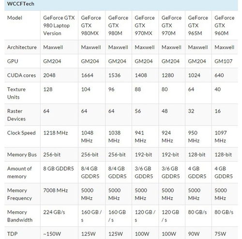 Современные видеоускорители, как правило, несмотря на мощность, не «тянут» дисплеи с разрешением, выше HD или Full HD. На данный момент наиболее мощной графикой является NVIDIA GeForce GTX 980M с максимальной частотой 1127 МГц и 2048 CUDA-ядрами. NVIDIA решила обновить уже существующие видеокарты GeForce GTX 980M и GTX 970M до GeForce GTX 980MX и GTX 970MX. Оба решения, как и прежде, в основе имеют чип GM204, однако GTX 970MX будет работать с частотой 941 МГц, получит 3/6 ГБ видеопамяти с шиной на 192 Бит и 1408 CUDA-ядер. TDP составит 100 Вт. GeForce GTX 980MX, в свою очередь, продемонстрирует чуть большее количество ядер – 1664, и 256-битную шину памяти. TDP в этом случае поднимется до 125 Вт.