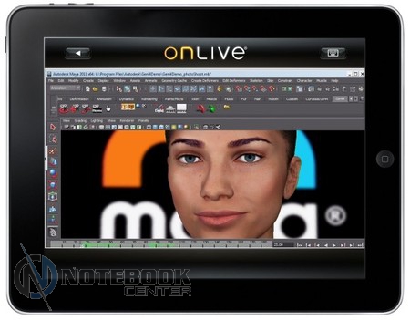 Глава компании OnLive Стив Перлман продемонстрировал, как с помощью сервиса OnLive на планшетах можно запускать программы для Windows 7, например, 3D-редактор Maya. Как и ранее в играх, приложения запускаются на сервере OnLive, а таким образом для работы будет необходим интернет и непременно с высокой скоростью.