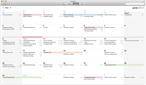 Стоит отметить и апгрейд календаря в Mavericks. Приложение получило новый внешний вид, бесконечную прокрутку между днями, неделями, месяцами, а также облегченный ввод заметок.