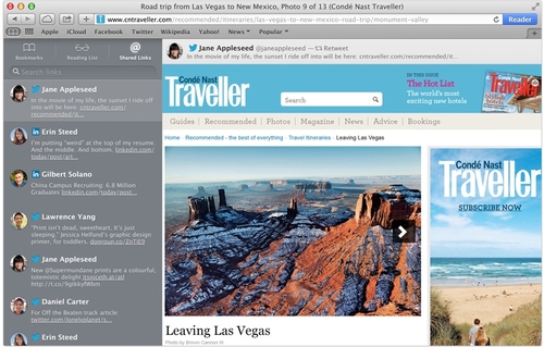 Apple добавила и несколько новых функций в Safari, в том числе реорганизацию боковой панели, где теперь отображаются закладки, списки чтения, а также ссылки, отправленные в социальные сети Twitter и LinkedIn. Энергопотребление браузера стало меньше, как утверждает разработчик, оно обходит по показателям Chrome и Firefox.