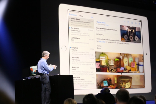 На WWDC была проведена демонстрация многозадачности с такими приложениями как Maps, Notes, ESPN и E-mail, также было отмечено, что разделение экрана будет доступно и в только что представленной OS X El Capitan.