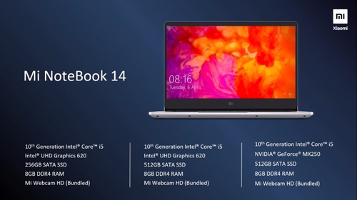 Xiaomi Mi NoteBook 14 Horizon Edition оснащен безрамочным дисплеем (занимает 91% панели), весит 1.35 кг, работает с процессорами Intel Core i5 и Core i7, видеокартой NVIDIA GeForce MX350, ОЗУ 8 ГБ, SSD 512 ГБ. Два варианта устройства оценены в $725 и $790.
