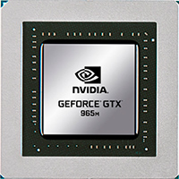 NVIDIA GeForce GTX 965M – 28-нм видеокарта с поддержкой DirectX 11, введенная в эксплуатацию в январе 2015 года. Она базируется на архитектуре Maxwell GM204, оснащает средне- и высокопроизводительные ноутбуки, работает с частотой 924 МГц (+ Boost) – это для графического процессора, и с 1250 МГц для памяти до 4 ГБ GDDR5.